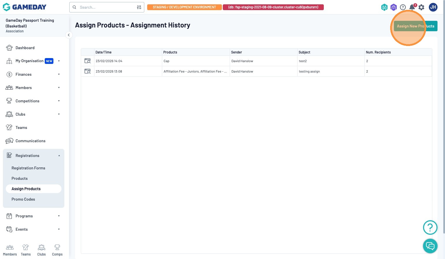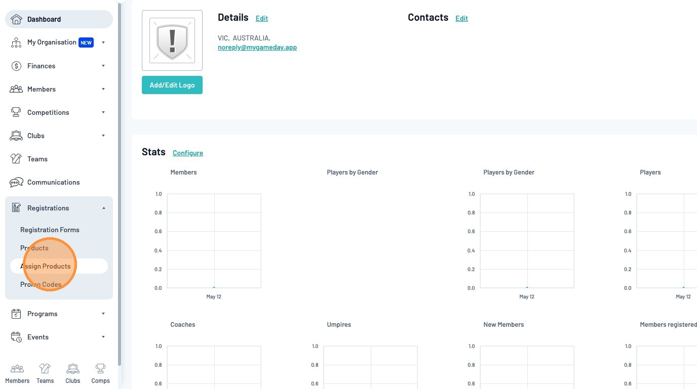 Click Registrations> Assign Products