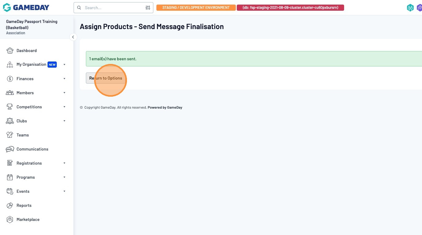 Once your email has been sent, click on the "Return to Options" button