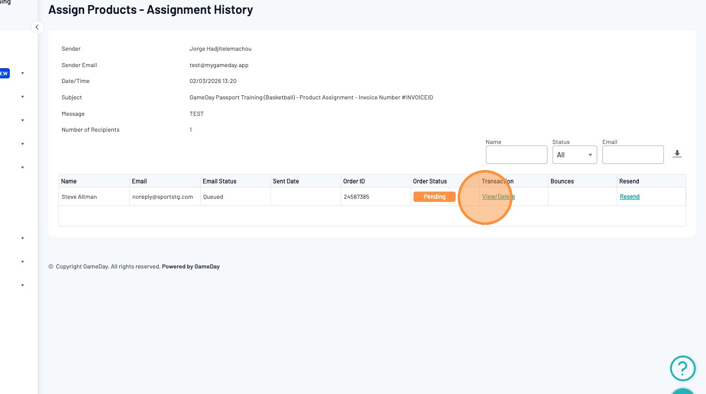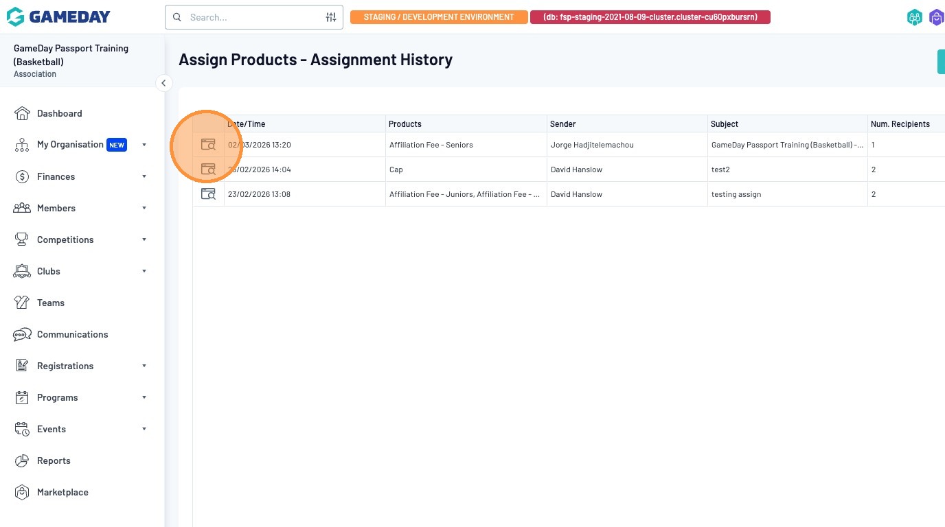 You can now view the details of all the previously sent product assignments.