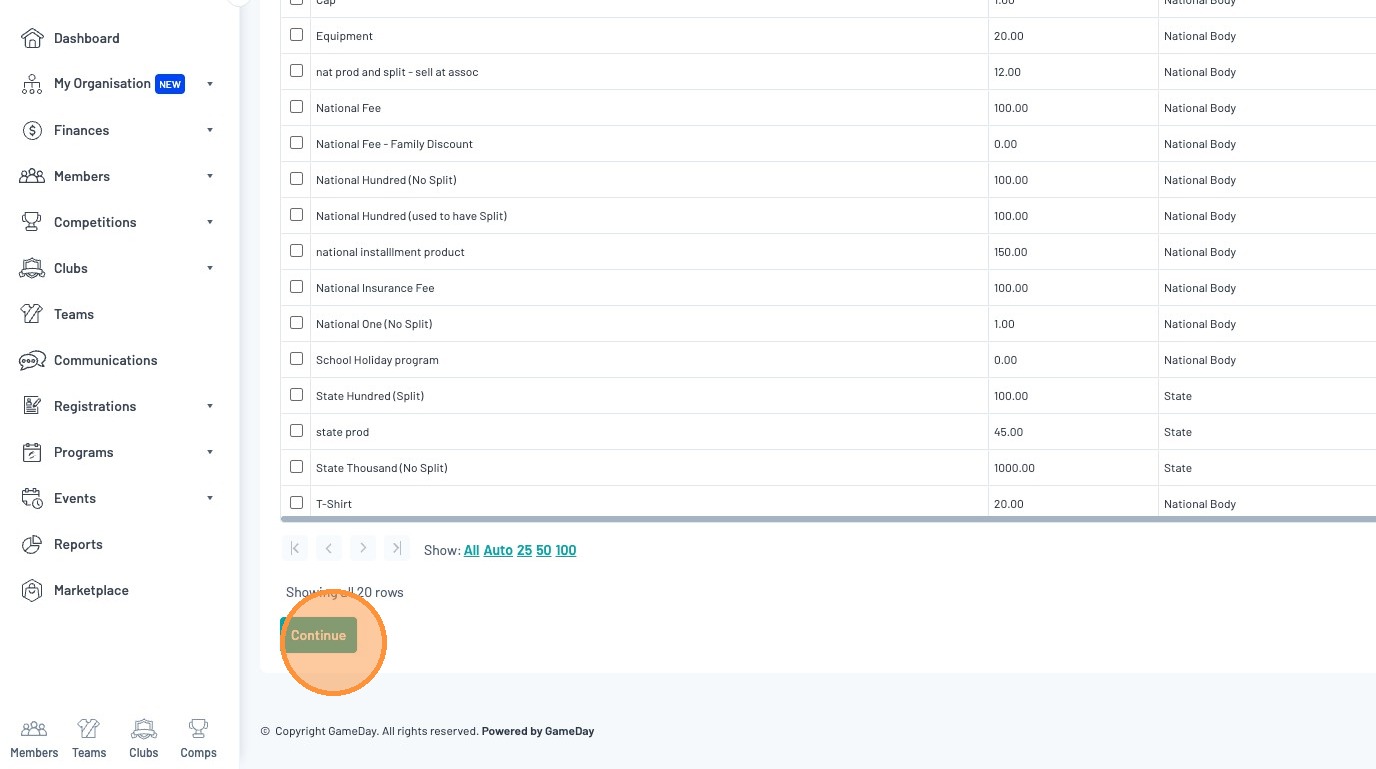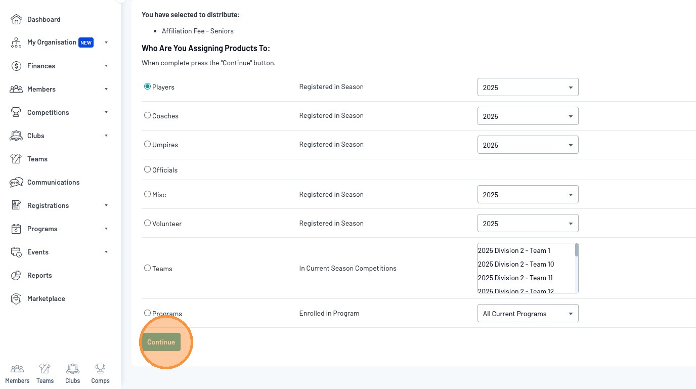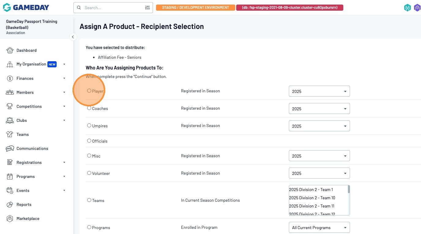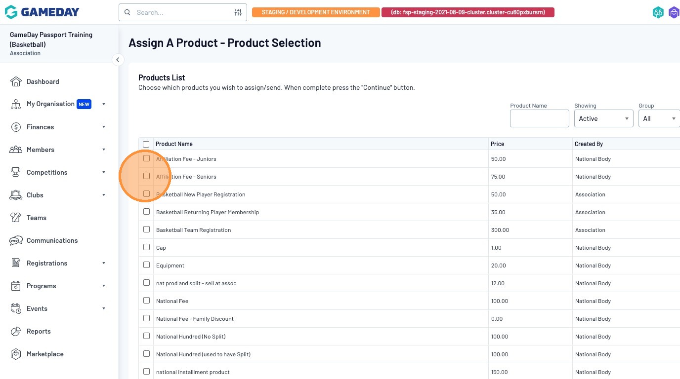 From the "Product Selection" page, you can choose which products you would like to apply to your members