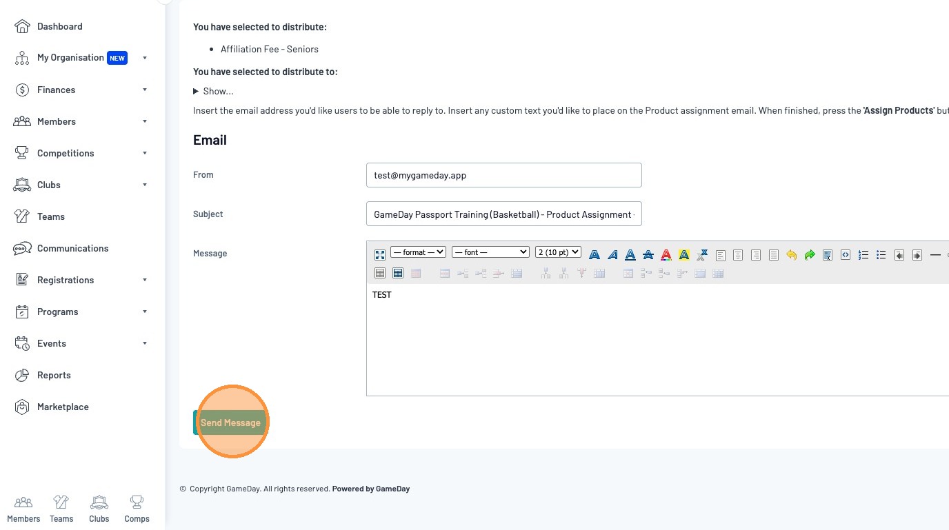 Once you have confirmed your messaging, click "Send Message"