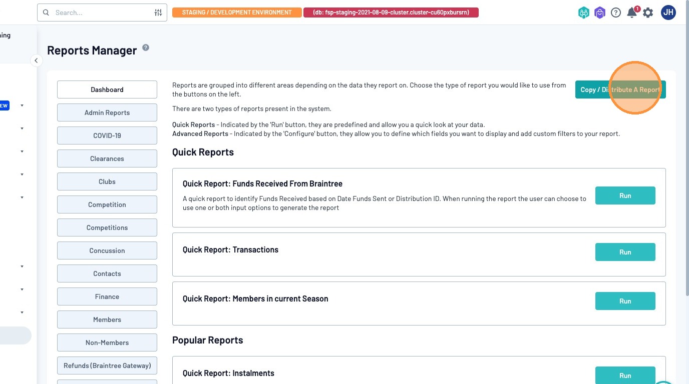 To navigate to your newly shared report, click on the "Clubs" menu item