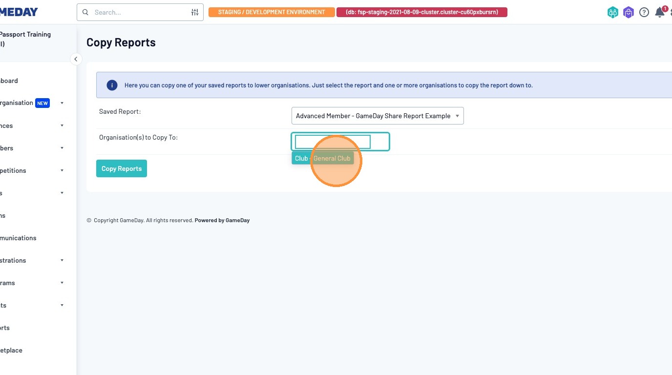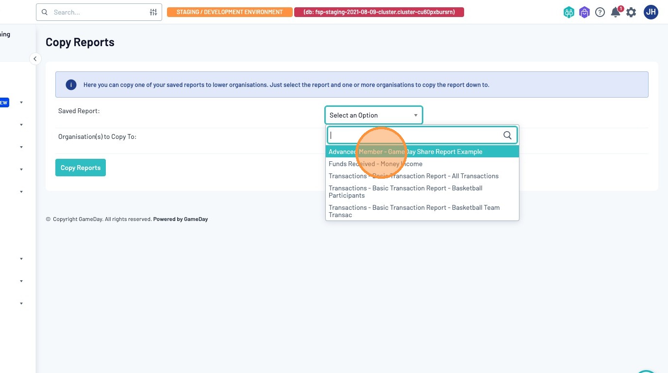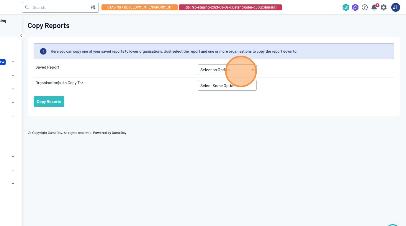 From the Copy Reports page, you can select the report you would like to share as well as the specific organisations you wish to share this report with.