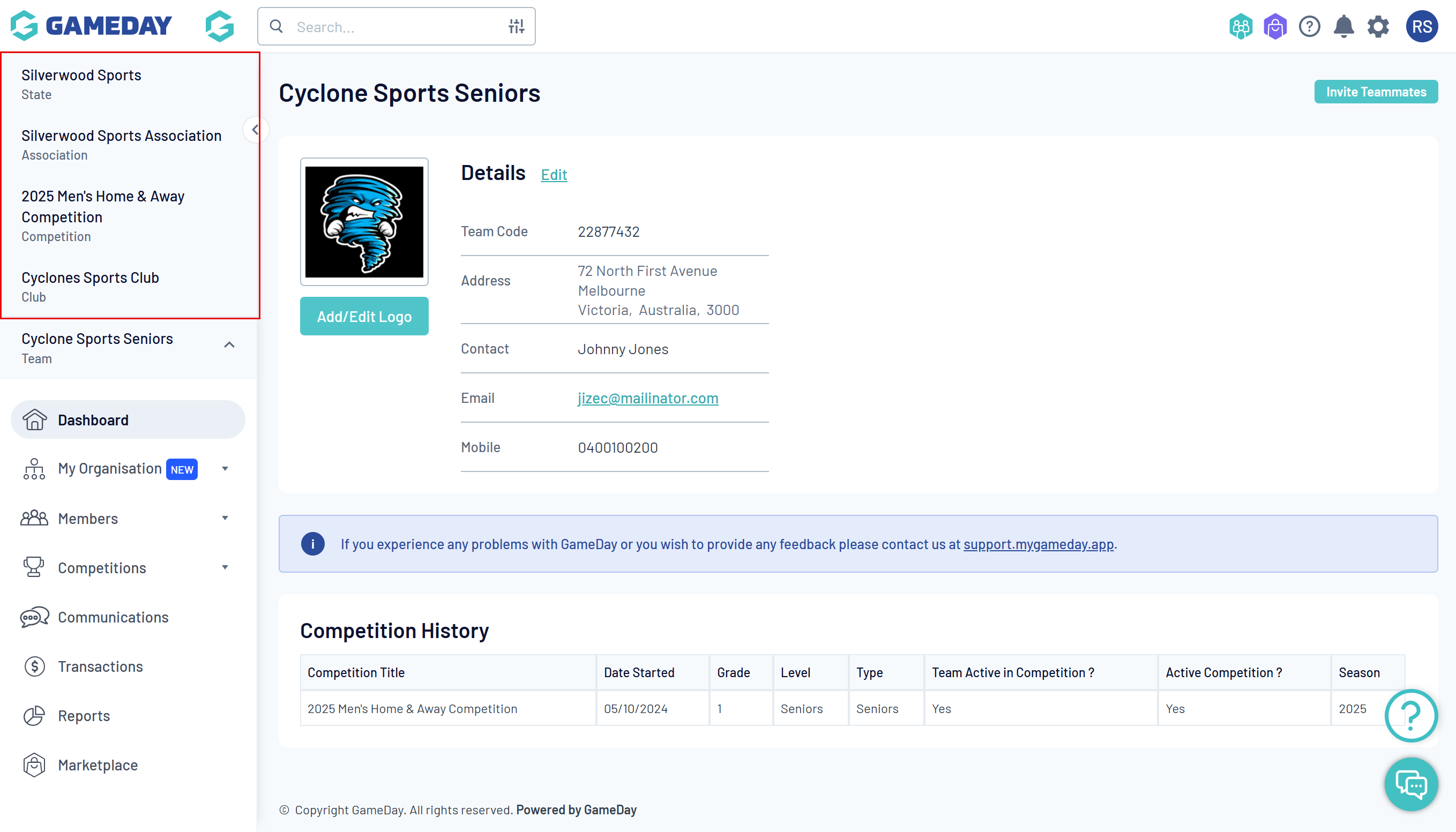 This structure provides a clear chain of command and data visibility. For example, a State administrator can view and manage all Associations and Clubs within their state, while a Club administrator can only manage their specific club and its teams. Navigating between these levels is a fundamental aspect of using the GameDay Passport platform.
