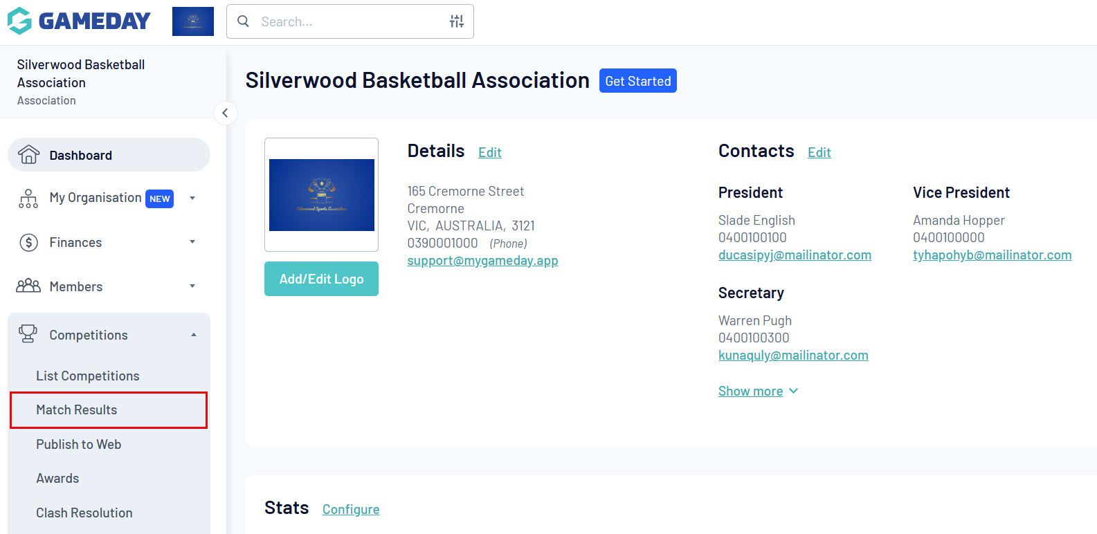 In the left-hand menu, click Competitions, then select MATCH RESULTS