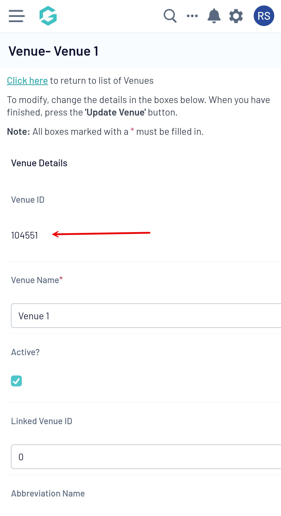 Login to your Association's GameDay Passport database, then in the left-hand menu, select Competitions > Venues > View the relevant venue > Copy the Venue ID