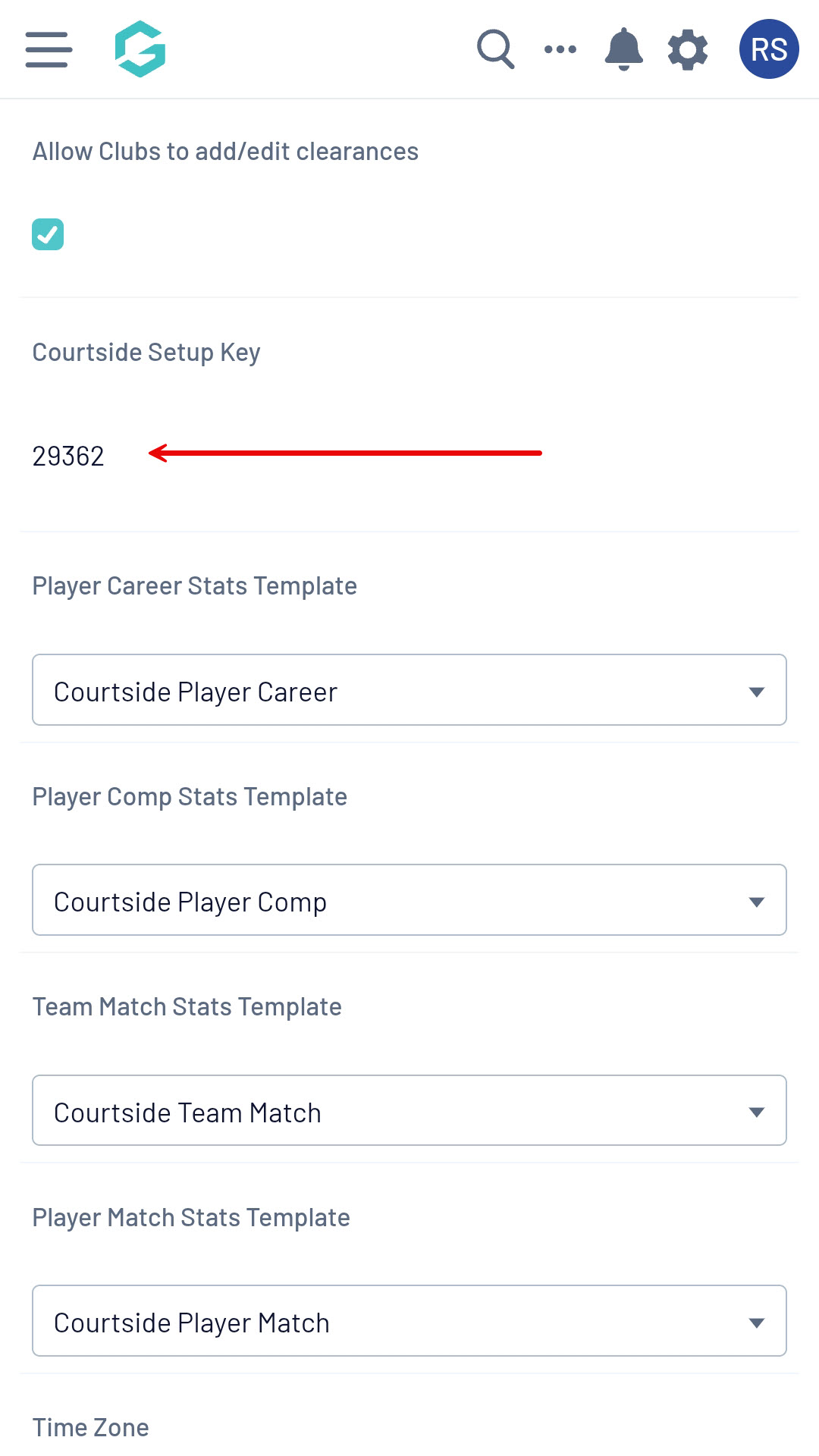 Login to your association's Passport database > Click Edit on the Details section of your dashboard > Copy the Courtside Setup Key