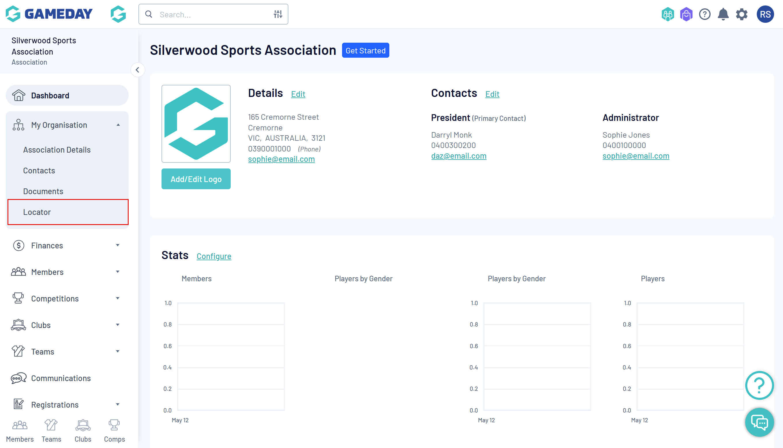 In the left-hand menu, open the My Organisation menu and select LOCATOR