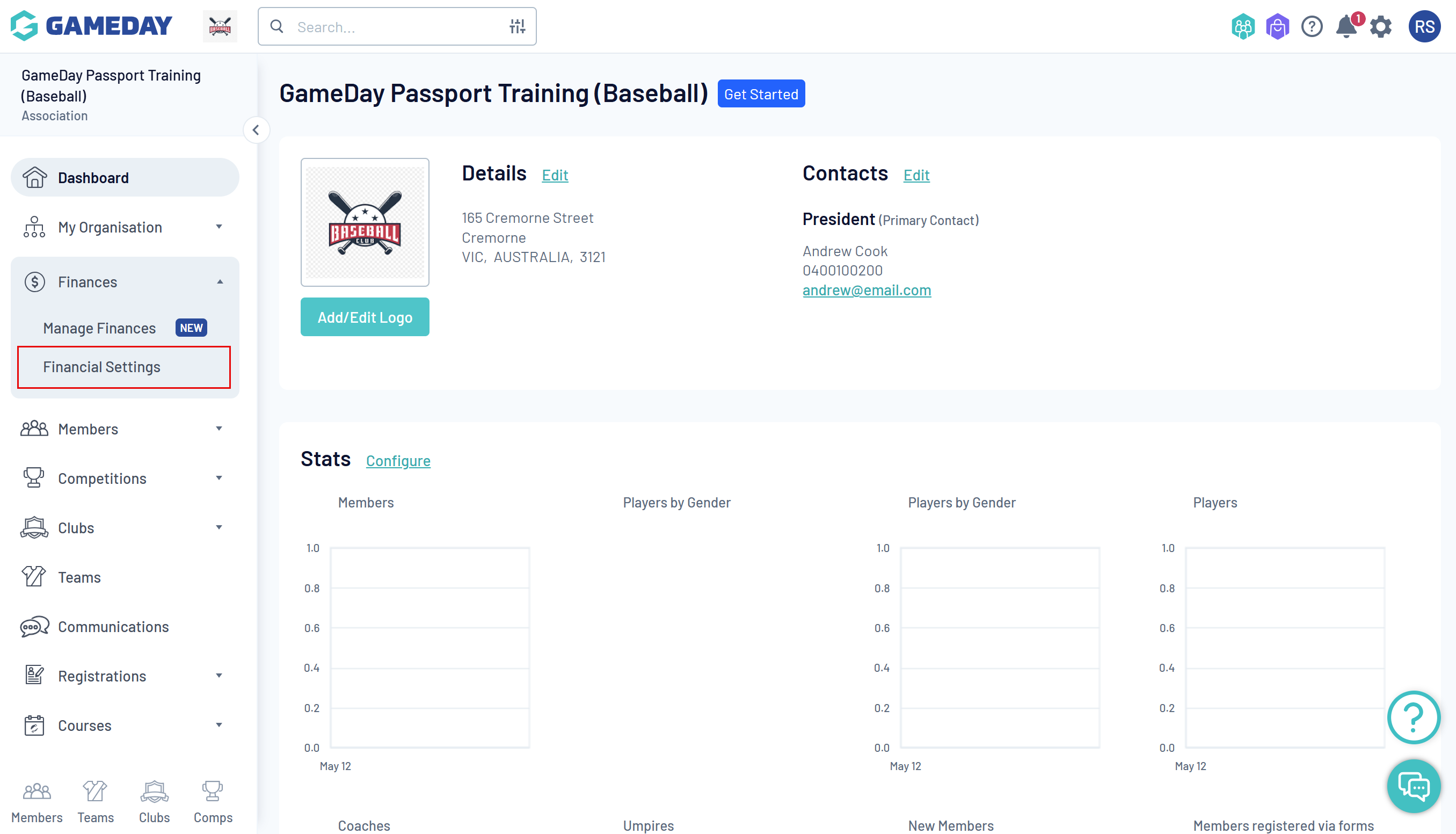 If you have completed your organisation's Stripe setup through Passport, you can go back and edit your Financial Settings at any stage using the mobile number you used to authenticate your Stripe account upon setup.