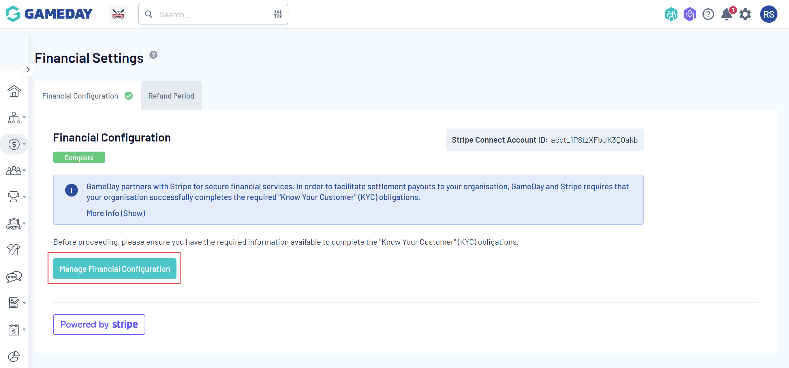 - Your organisation's Stripe Connect Account ID (this can be found in your Passport database on the Finances > Financial Settings > Financial Configuration page)