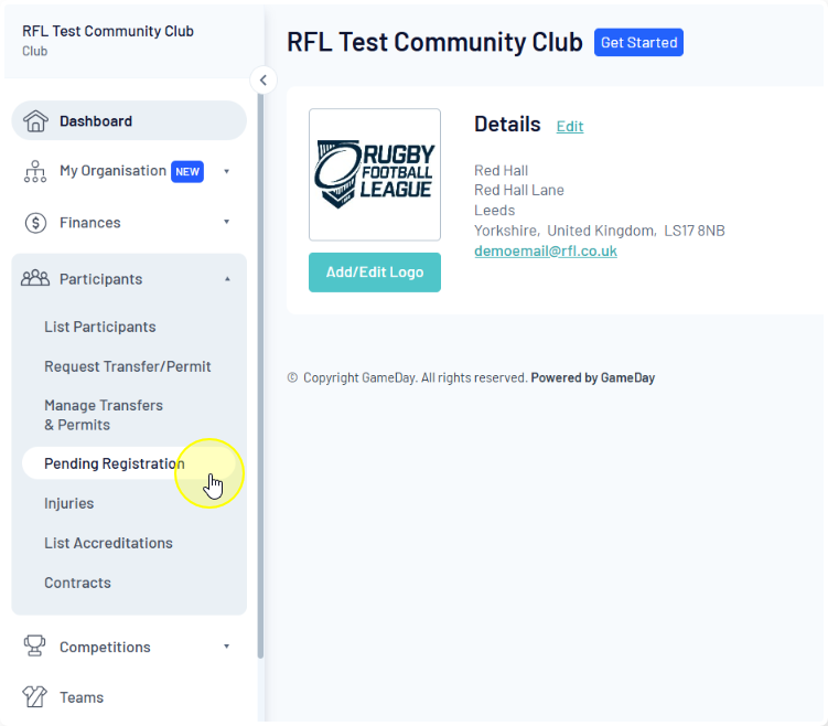 In the left-hand menu, click Members/Participants > PENDING REGISTRATION