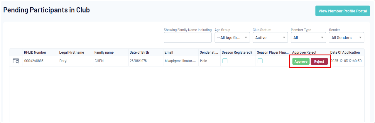 Here, you will see a list of members that have currently registered and are waiting to be approve/denied