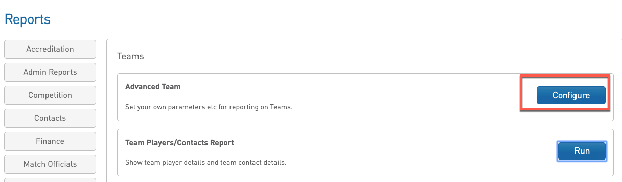 Find any report that has the CONFIGURE action button - for this example, we will use the Advanced Member report.