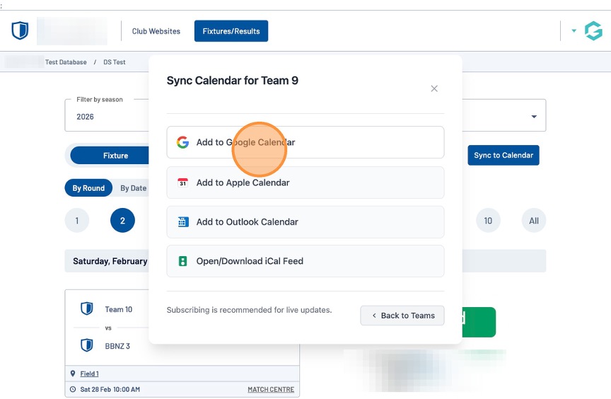 GameDay Passport includes the ability for users to follow their favourite teams and competitions by syncing fixtures to a calendar of their choice.